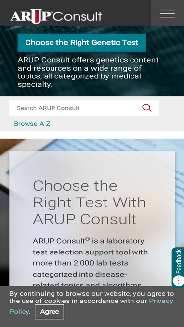 82%arup consult is a laboratory test selection support tool with more than 2,000 lab tests categorized into disease-related topics and algorithms.