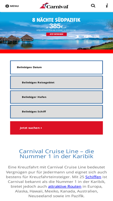 92%Carnival Glory s 13 palubami pro cestující, nabízí četné atrakce pro potěšení a pro všechny věkové kategorie. Ti, kteří chtějí strávit uvolněnou dovolenou, se mohou těšit na oblast Serenity, na piano bar a omlazující procedury v lázních. Různé bary, jako je například Modra Iguana Tequila Bar a červená Frog Rum Bar, nabízejí osvěžující nápoje s exotickými přísadami. A v kině pod širým hvězdným nebem můžete sledovat nejnovější hollywoodské trháky . Přesvědčte se a zažijte nádherný čas na palubě Carnival Glory!