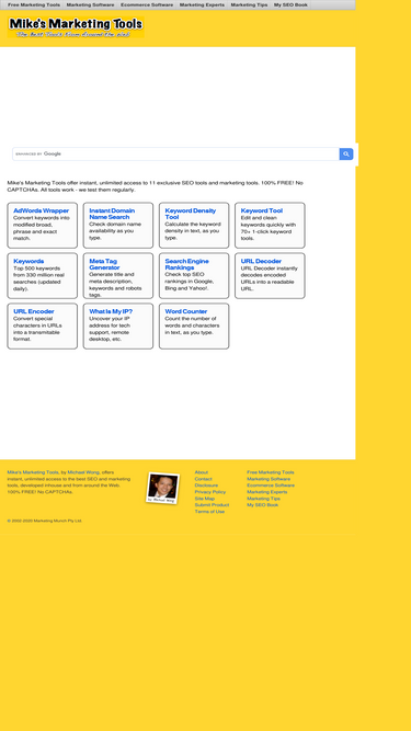 100%the new version of mike's marketing tools, by michael wong, helps you find the best internet marketing and ecommerce software, products and services, free marketing tools, and useful marketing tips from around the web.
