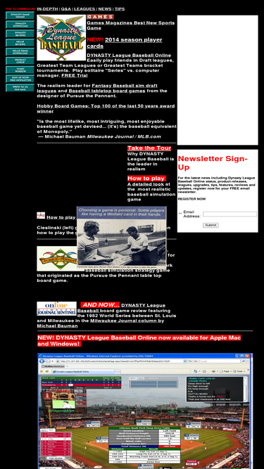 88%dynasty league baseball powered by pursue the pennant is the leader in realism for baseball simulation games. in permanent archives of national basebal hall of fame and awarded best new sports game by games magazine. available in original board version as well as new online version. play solitaire or easily play live games in one click in multi-player draft leagues in apple mac or windows os. ipad coming soon.