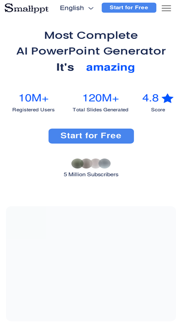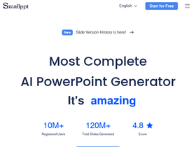 94%Smallppt is an AI slideshow maker that turns your ideas into professional slides using smart PowerPoint templates. Create stunning presentations in seconds.