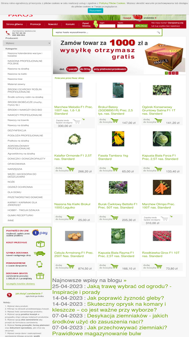 Nasiona, nawozy, środki ochrony roślin, artykuły rolnicze, ogrodnicze, sadownicze i dla działkowca. W naszej sieci sklepów kupisz również narzędzia ogrodnicze i akcesoria bhp. Błyskawiczna dostawa w 24h.
