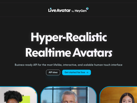 68%LiveAvatar offers enterprise-grade real-time AI avatar solutions powered by HeyGen's industry-leading, hyper-realistic research, enabling visionary developers and organizations to bring fast, scalable and interactive face-to-face human presence into AI agents, products, and customer experiences.