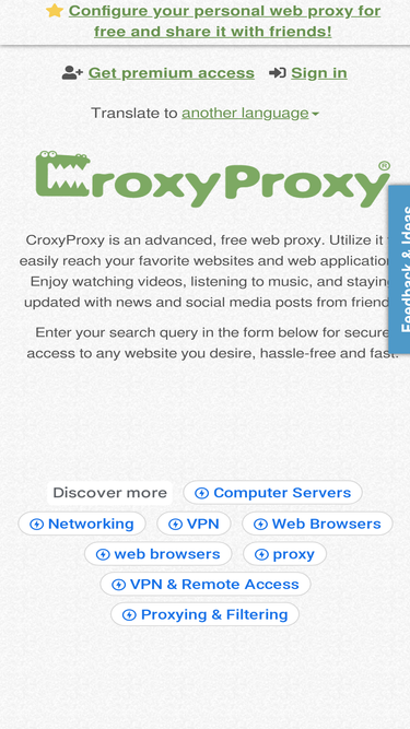 94%croxyproxy is a cutting-edge secure web proxy service. use it to access your favorite websites and web applications: as a facebook or youtube proxy. it is free, you can try this online proxy right now!