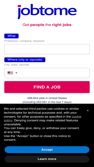 100%jobtome is a search engine that connects job seekers and companies worldwide.