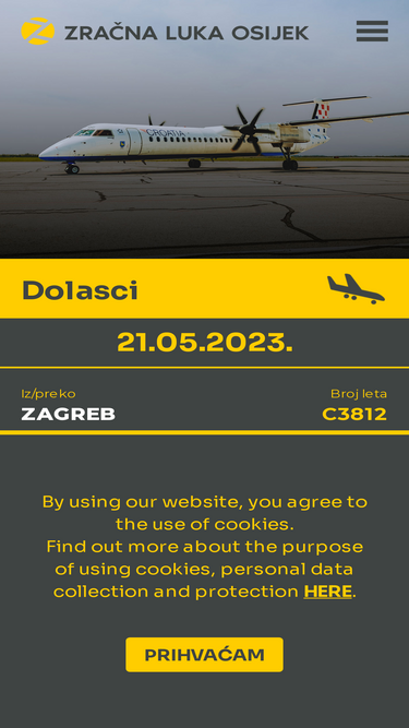 79%Od 27. listopada 2025. svi putnički procesi odvijaju se u privremenom prostoru unutar upravne zgrade Zračne luke Osijek <p data-start="418"...