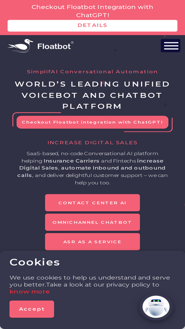 89%Floatbot is a leading Enterprise-grade, No-Code Generative & Conversational AI Platform that allows you build & deploy Gen AI Voice and Chat AI Agents and Real-time Agent Assist.