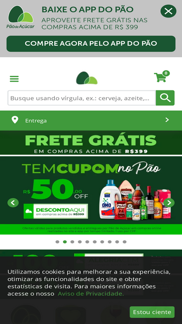 42%Você já imaginou fazer supermercado online? Compre pela internet no Paodeacucar.com sem sair de casa e receba todos os produtos que você precisa, onde quiser!