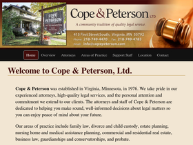 100%cope & peterson's areas of practice include family law, divorce and child custody, estate planning, nursing home and medical assistance planning, commercial and residential real estate, business law, guardianships and conservatorships, and probate.