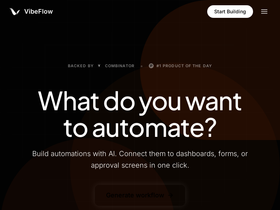 82%VibeFlow turns prompts into full-stack apps with transparent, visual backends. Unlike black-box builders, you can see and edit your entire application - frontend AND backend - with n8n-style workflows you actually control.