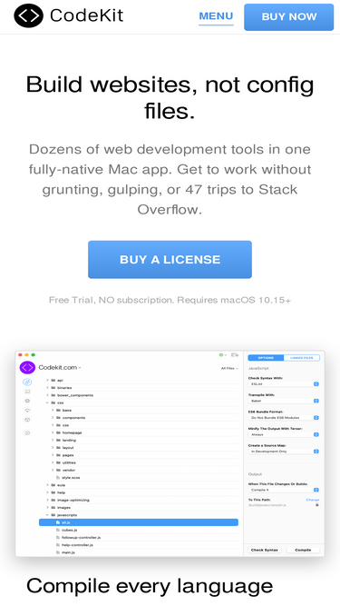 codekit is a mac app that makes it easy to use modern web development tools like npm, babel, sass, javascript bundling, image optimization, and eslint.