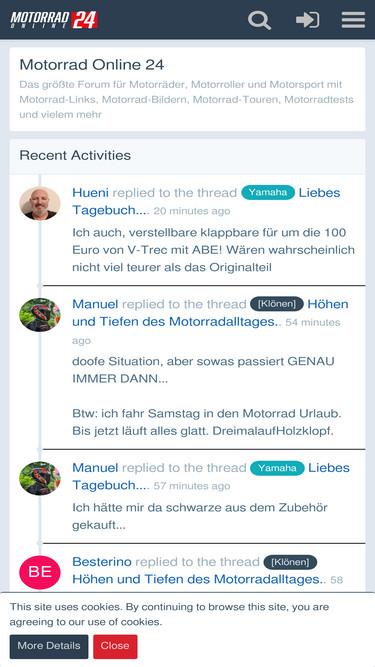 54%das größte forum für motorräder, motorroller und motorsport mit motorrad-links, motorrad-bildern, motorrad-touren, motorradtests und vielem mehr