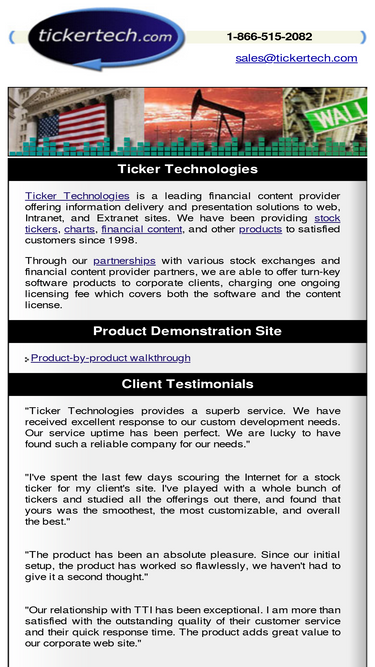 65%a leading financial content provider to intranet and internet sites, we have been a provider of stock ticker, news ticker, and other products to satisfied customers since 1998.