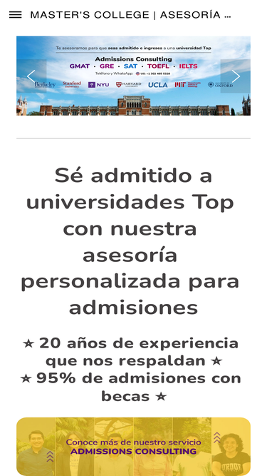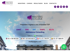 62%Preparate para el GMAT, GRE, TOEFL, IELTS, SAT en Master's College. Master's College es liderada por profesionales becados con maestrías y doctorados en el extranjero, quienes brindan asesoría y preparación para estudiar un postgrado en universidades TOP en países de habla inglesa (USA, Inglaterra,