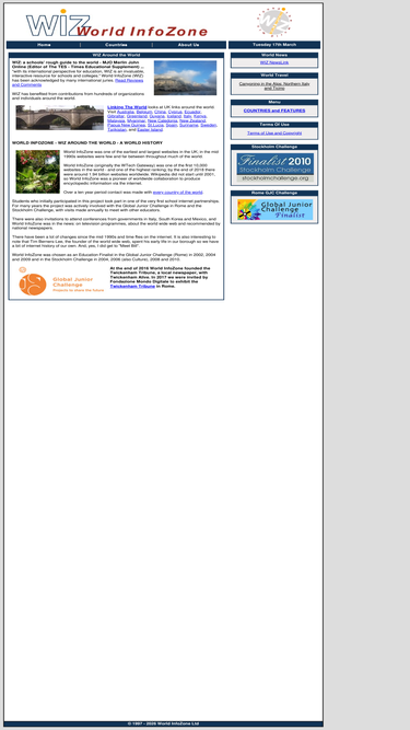 75%world infozone (wiz) contains information and news for all countries. wiz is also a useful resource for teaching diversity, culture and citizenship