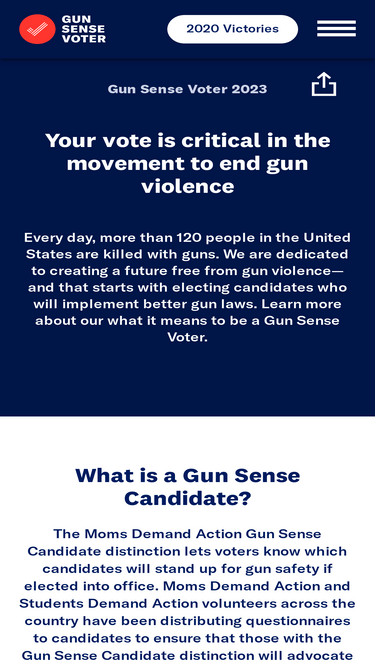 92%Find answers about who we are, how we work, how to plan your vote, and what it means to be a Gun Sense Voter.