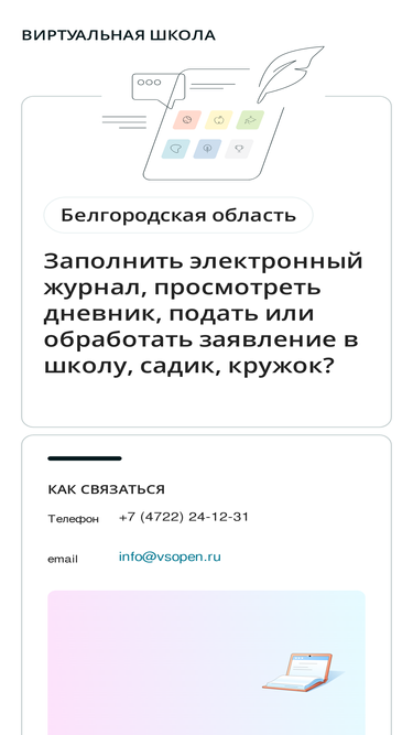 60%комплексное решение по автоматизации сферы образования, вместившее в себя функционал от подачи заявления на зачисление в образовательные организации и просмотра успеваемости родителем до получения сводной отчетности и оценки качества образования на региональном уровне. проект охватывает все уровни образования: дошкольное, начальное, основное, среднее общее образование, профессиональное, дополнительное.