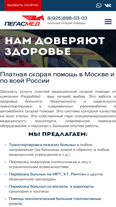 59%Когда в короткие сроки нужно решить серьёзные логистические задачи по транспортировке пациента на большие расстояния, надёжным помощником в решении задачи будет медицинская служба скорой помощи нашей компании.