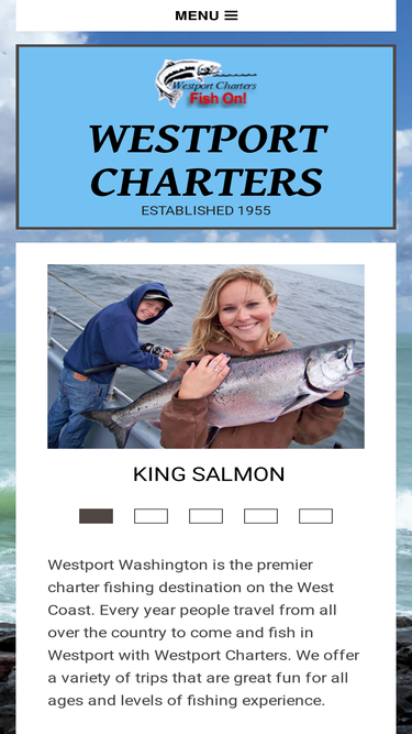 26%salmon charters in westport, washington offers pacific ocean charter fishing trips for salmon, halibut, albacore tuna, and bottomfish including rockfish, and ling cod.