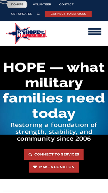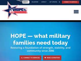84%Hope For The Warriors was founded by military families aboard Marine Corps Base Camp Lejeune, NC in 2006 as they witnessed, firsthand, the effects war imparts on service members and their families. Hope For The Warriors has remained grounded in family values as the organization expands both the span of programs offered and the number of wounded, family members, and families of the fallen assisted.