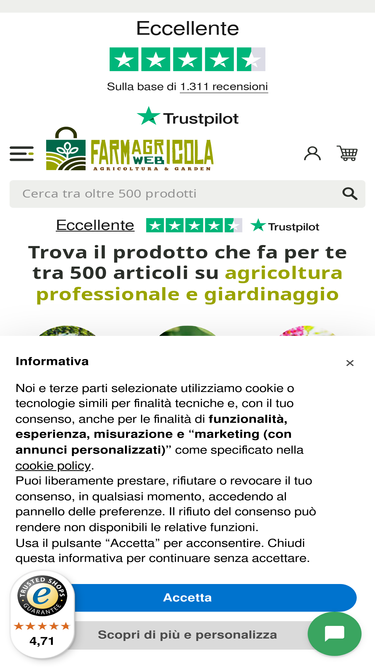 87%Vendita on-line di prodotti per l'agricoltura: Concimi - Erbicidi - Fungicidi - Insetticidi - Oli e Lubrificanti - Ricambi & Accessori per il giardinaggio