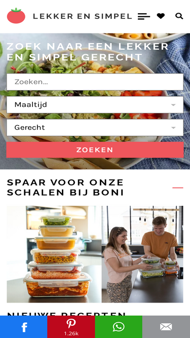 81%Lekkere & makkelijke recepten voor elke dag. Van gezonde recepten tot avondeten, tot borrelhapjes en bakrecepten. Wat eten we vandaag?
