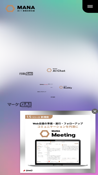 98%2023年10月26日 - ギブリー、11月1日に「法人GAI」をメジャーアップデート。ドラッグ&ドロップで簡単にデータ連携、AIがデータを読み取りユーザーが実行したいタスクを予測して提示。 MANA(マナ)