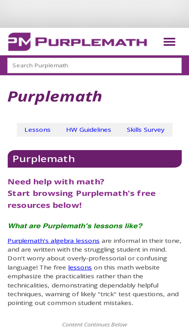 87%mathguide contains math lessons, interactive quizzes, instructional videos, and information helpful to students, parents, teachers, and those who have inquisitive, logical minds.