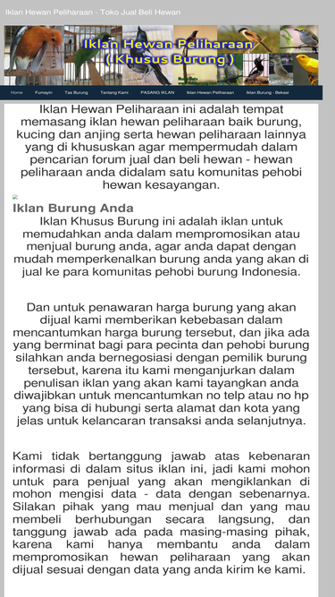 61%Iklan Hewan Peliharaan ini adalah tempat memasang iklan hewan peliharaan baik burung, kucing dan anjing serta hewan peliharaan lainnya