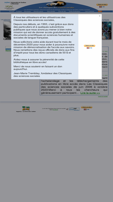 une bibliothèque numérique unique et originale dans le monde francophone en sciences sociales et humaines, développée en collaboration avec l'université du québec à chicoutimi, fondée et dirigée par jean-marie tremblay, bénévole, professeur de sociologie au département des sciences humaines du cégep de chicoutimi.