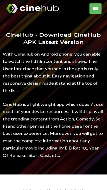 77%Download CineHub APK for Android smartphone from official website. Check how to install cine hub latest apk on android phone to watch movies, tv shows free