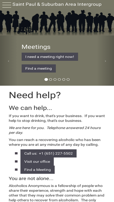 92%Greater Minneapolis Intergroup of Alcoholics Anonymous, find AA Meetings, service opportunities, and other recovery resources for the Minneapolis area.