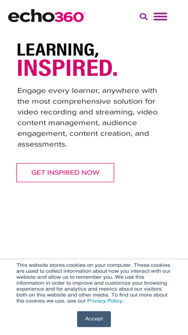 38%learning, inspired. engage every learner, anywhere with the most comprehensive solution for video recording and streaming, video content management, audience engagement, content creation, and assessments. get inspired now introducing echoexam anchored in standards and trusted by leading publishers worldwide, echoexam is the leading saas platform for summative assessments in education and business, across any modality and...