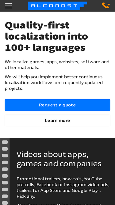 82%専門的なゲームローカライズサービスでプレイヤーエンゲージメントと収益を向上させます。モバイル、PC、&コンソールゲームを120以上の言語に翻訳します。今すぐ無料でお見積もりをご依頼ください!