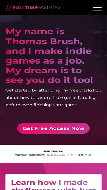 At Full Time Game Dev, you'll learn from actual game developers in the trenches making indie games full time. From the technical side of making games in any engine, to actually securing real money for your games, Thomas and his coaches will hold your hand on your game dev journey.