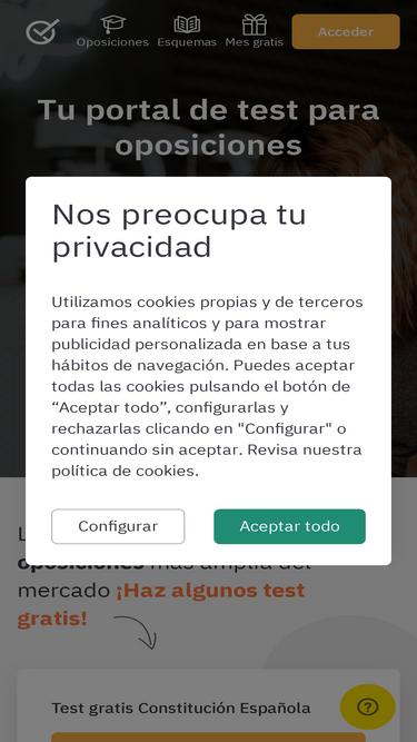 84%Consulta nuestra Política de Cookies en Supera Oposiciones. Conoce cómo utilizamos las cookies para mejorar tu experiencia de navegación y garantizar tu privacidad en nuestra plataforma de preparación de oposiciones.