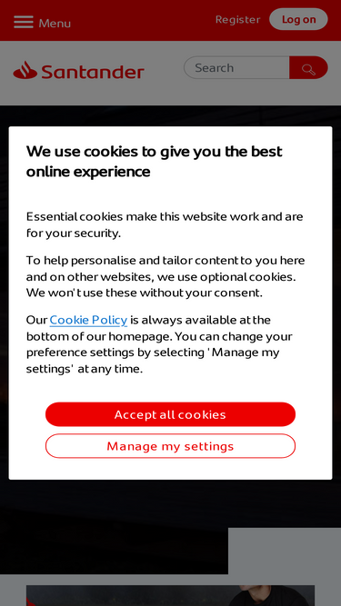 96%welcome to santander. we offer current accounts, savings, mortgages, loans, credit cards and much more. here to help you prosper