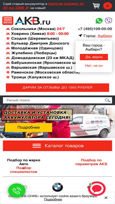 Профессиональный магазин аккумуляторов в Одинцово! Скидки при обмене старого АКБ на новый. Большой выбор аккумуляторов на автомобиль, мотоцикл и любые другие виды техники! Открыто ежедневно с 9 до 22