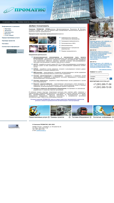 100%компания проматис основана в ноябре 1991 года для решения задач автоматизации технологических процессов в различных отраслях промышленности. приоритетные направления деятельности: проектирование асу тп, меs, систем электроснабжения, электропривода; поставка и наладка частотно-регулируемых электроприводов; разработка энергосберегающих систем управления и систем учета энергоресурсов; проектирование, поставка, шеф-монтаж кипиа, «горячая врезка» полнопроходных, погружных вихревых турбинных расходомеров емсо; поставка под проект оборудования, шеф-монтаж и ввод в эксплуатацию.