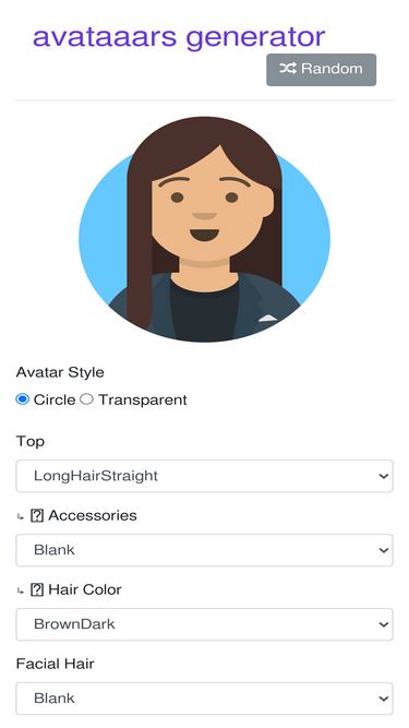 82%Avataaars Generator is a free online tool for generating your own avatar