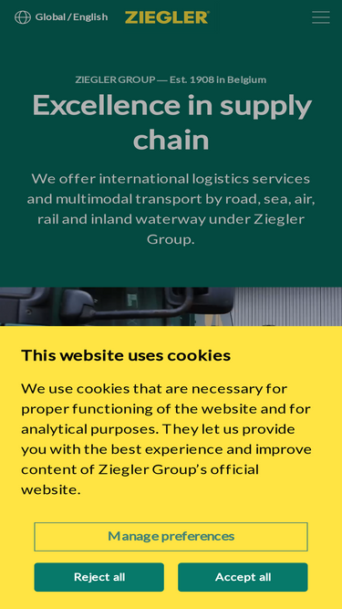 84%founded in 1908, ziegler group is a leading global logistics service provider offering road freight, airfreight, sea freight, rail freight, inland waterway, logistics, customs clearance, e-commerce and other value-added services.