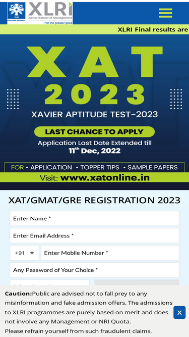 83%xlri conducts xat on behalf of xami & xat associates for admissions to pgdm & mba programs. xat score is accepted by 250+ b-schools in india.