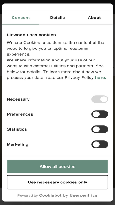 83%GENERAL INFORMATIONThe following General Terms and Conditions of Sale ("Terms and Conditions") concern the offer and sale of products on the website www.liewood.com (“the Website”), owned and maintained by LIEWOOD A/S, Blegdamsvej 124, 2100 Copenhagen Ø, Denmark, business registration no. 36971509 (“Liewood”). Requests