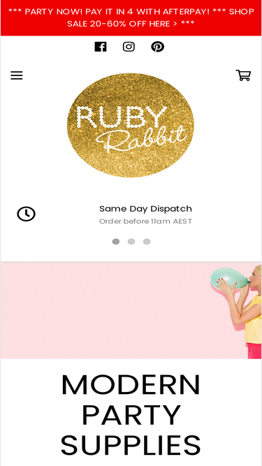 100%Australia's leading modern party & event supplies. Premium party goods, decorations, tableware, invitations, balloons, balloon garlands, bakeware, favour bags. Birthday party, kids party, baby shower, christening, baptism, celebration. Fast shipping to Australia & New Zealand.