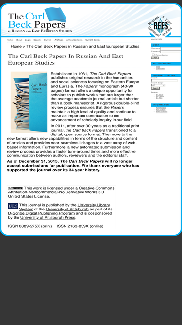 81%the carl beck papers publish original work in the humanities and social sciences with a focus on east europe and eurasia. publications are monographs of 40-90 pages in length.