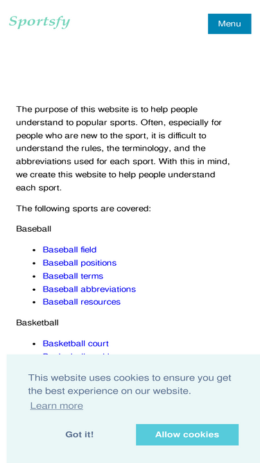 99%Ever been confused by a sports term when you watch TV or an abbreviation when you read the news? Sportsfy.com provides a glossary of sports terms so you understand exactly what you see and hear.