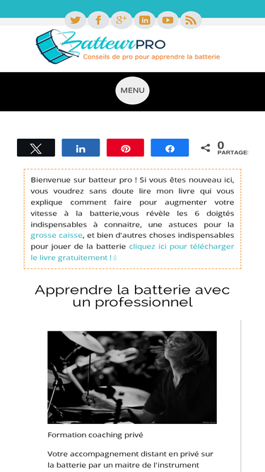 99%Découvrez mon article ➤ Apprendre La Batterie : 11 Rythmes Incontournables sur Batteurpro.com ! ✅ Cours de batterie privés ✚ 15 ans d’expérience