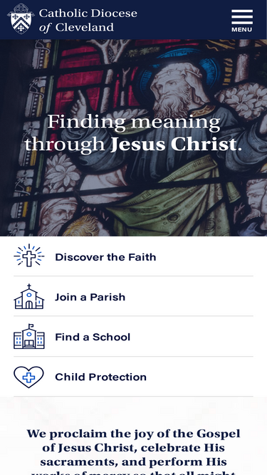 We proclaim the joy of the Gospel of Jesus Christ, celebrate His sacraments, and perform His works of mercy so that all might share in His salvation and experience eternal happiness with Him.