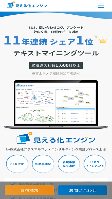 86%市場の声は、商品・サービスの開発や改善、プロモーション企画につながるアイデアの宝庫。企業活動における重要性もますます高まっています。しかし、いざ「市場の声をマーケティング施策に活用しよう」となっても、「どうすれば…」と悩まれる担当者も多いのではないでしょうか。そんなマーケティング活動における市場の声を分析するうえでのお困り事を解決するため、データを集・分析・活用する一連の動きについて、1600社のテキストデータ分析・活用を支援する「見える化エンジン」のノウハウを紹介していきます。
