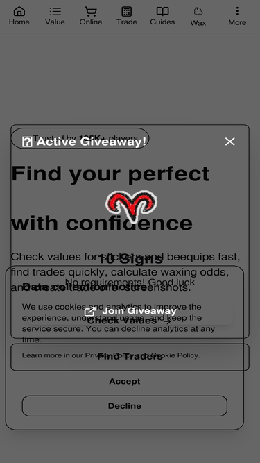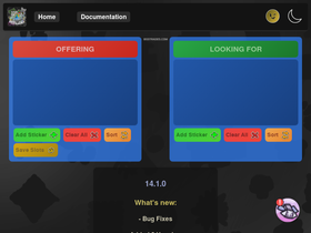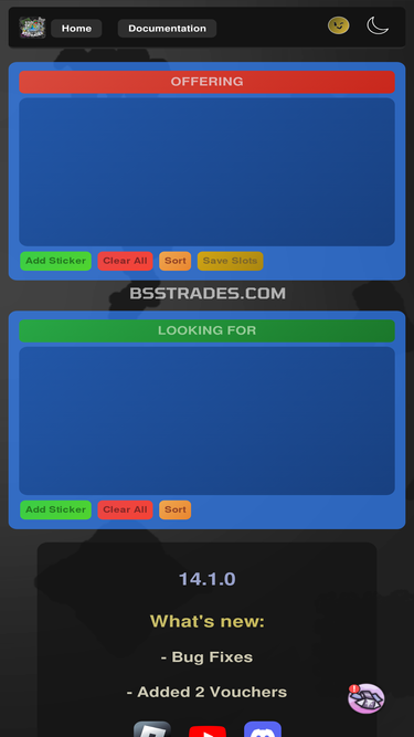 83%bsstrades is a tool that allows you to make a wishlist with an advanced index that allows you to search stickers with keywords, the main goal is to help you with bee swarm simulator trading.
